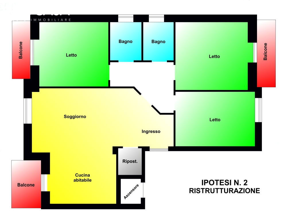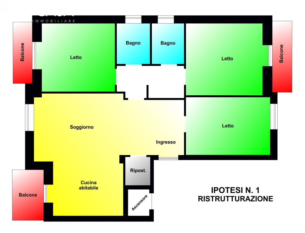 ALLOGGIO al 3° Piano composto da: Ingresso, Cucina abitabile, soggiorno, 2-3 camere letto, 2 bagni, 3 balconi, cantina e Box Auto